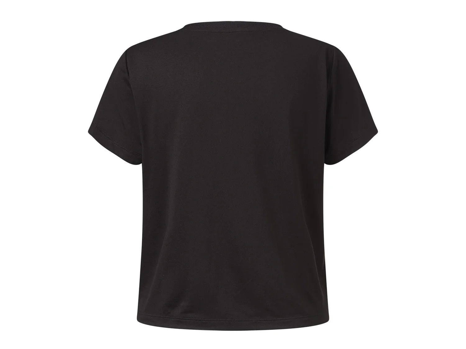 تیشرت ورزشی زنانه مشکی برند Crivit تولید شرکت لیدل (LIDL) با طراحی شیک و کیفیت بالای پارچه، انتخابی مناسب برای بانوانی است که به دنبال راحتی، دوام و استایل مدرن هستند. این محصول از ترکیب ۹۰٪ پلیاستر و ۱۰٪ الاستان ساخته شده و خاصیت خشکشوندگی سریع و تنظیم رطوبت دارد. ضخامت بالای پارچه همراه با بافت نرم و لطیف، حس راحتی و پوششی مطمئن ایجاد میکند.